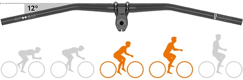 Der 12° Backsweep (Biegung nach hinten) sorgt bei gestreckter Sitzposition für einen geraden Übergang vom Unterarm zur Hand.